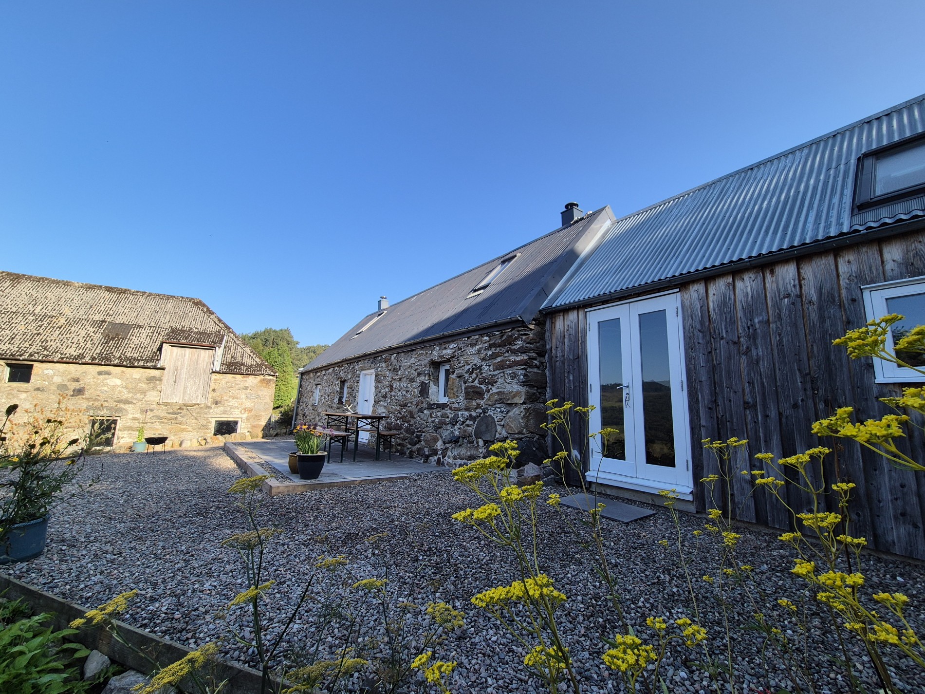Private garden with paved seating area, fire pit seating and wonderful views
