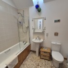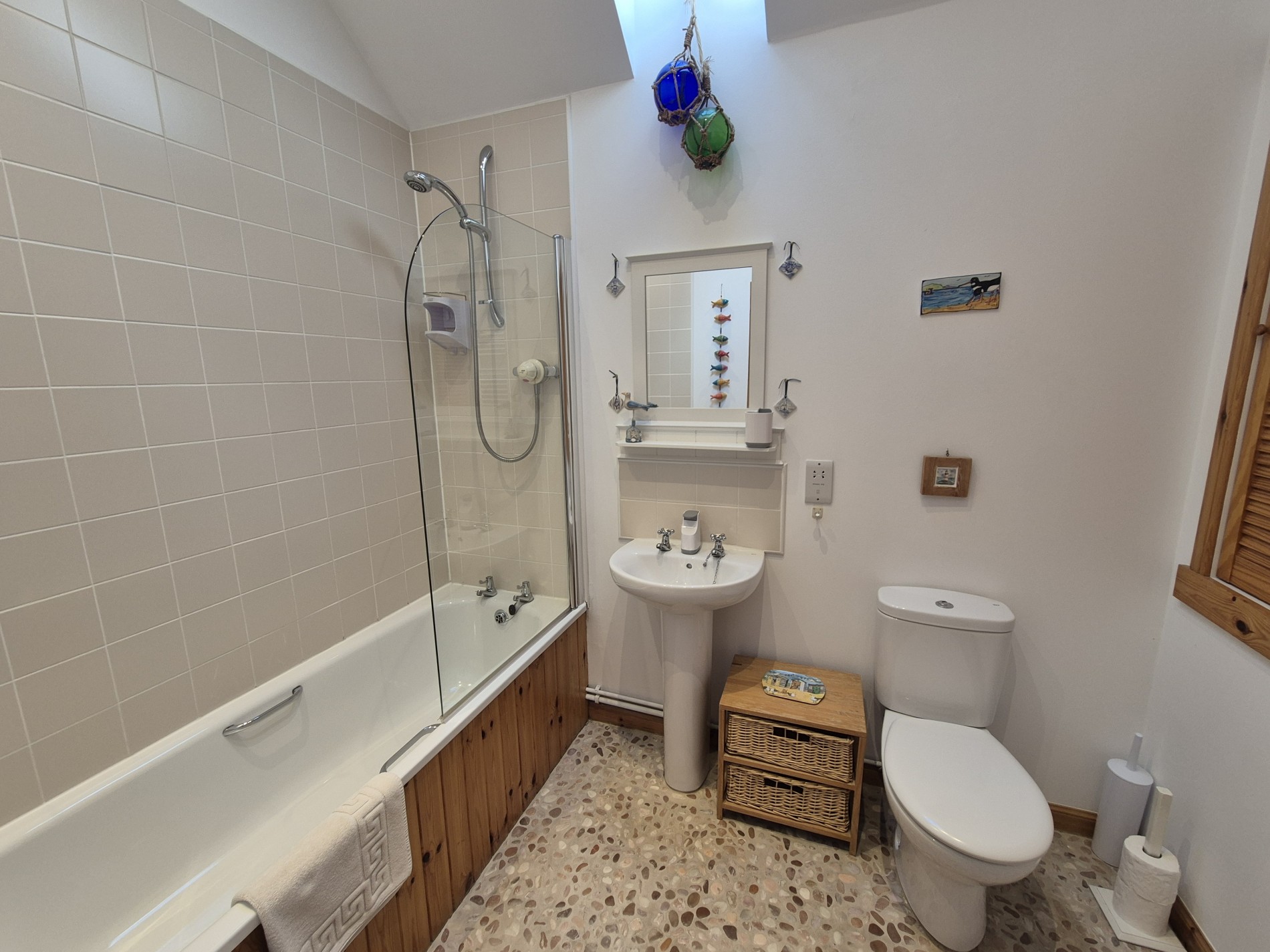 Bright and spacious bathroom with shower over bath