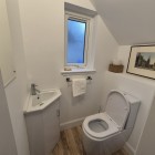 Contemporary and elegant with a large walk-in shower, WC, and wash hand basin.