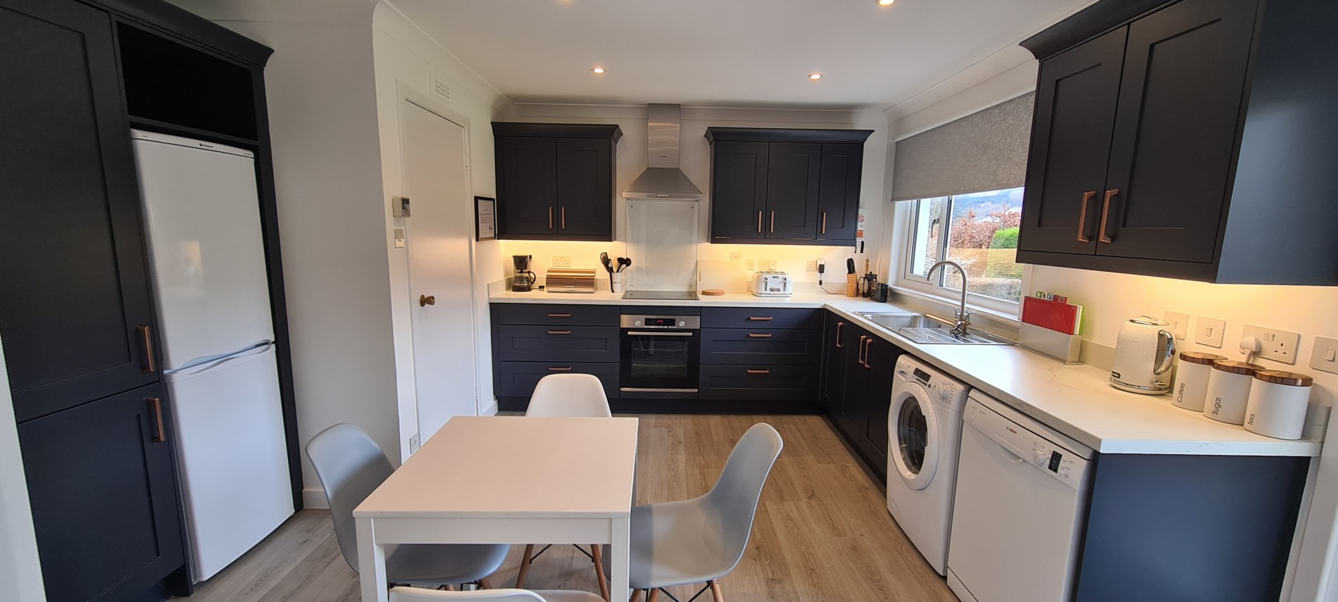 Modern Kitchen – Fully equipped with oven, hob, microwave, fridge freezer, dishwasher, and washing machine